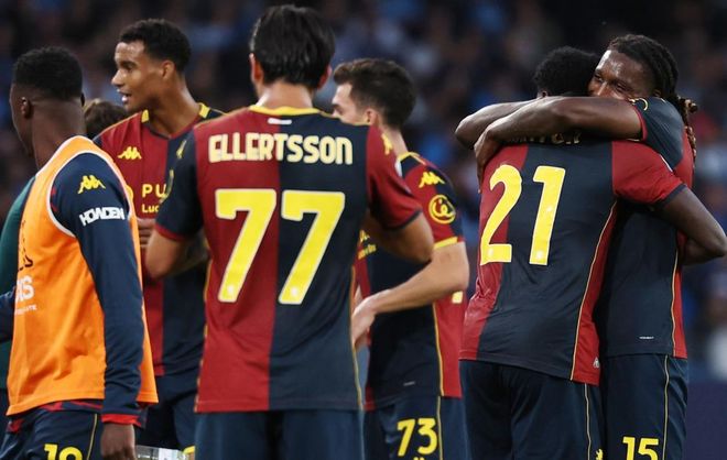 第71分钟,霍伊伦单刀低射破门。但是,因为此前德布劳内越位,进球无效。随后,迪洛伦佐头球攻门击中了门框,太可惜了。第75分钟,那不勒斯再进一球!安古伊萨低射被扑出,霍伊伦补射,球进了!那不勒斯反超比分!最终,那不勒斯2-1逆转击败热那亚。曼联弃将霍伊伦再次成为关键先生,他的进球价值千金,他连续2场比赛总共打进3球,状态非常好。