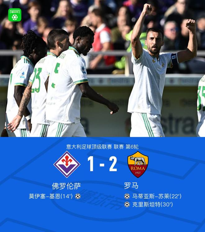 北京时间10月5日,意大利足球甲级联赛第6轮展开较量,佛罗伦萨坐镇主场迎战罗马。比赛中,佛罗伦萨率先取得进球,尼科卢西-卡维利亚送出助攻,莫伊塞-基恩完成破门,为主队建立领先优势。随后罗马迅速做出回应,多夫比克精准传球助马蒂亚斯-苏莱扳平比分。不久之后,马蒂亚斯-苏莱突破传中,克里斯坦特包抄得手,帮助罗马实现反超。此后双方均未能改写比分,最终全场结束,佛罗伦萨以1-2不敌罗马。