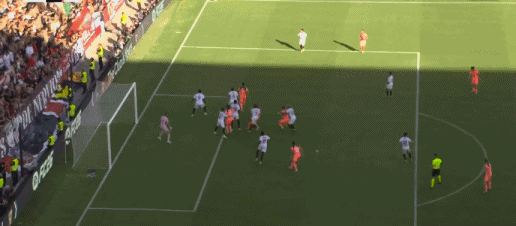 第90+6分钟,阿科-亚当斯推射破门!塞维利亚4-1巴萨